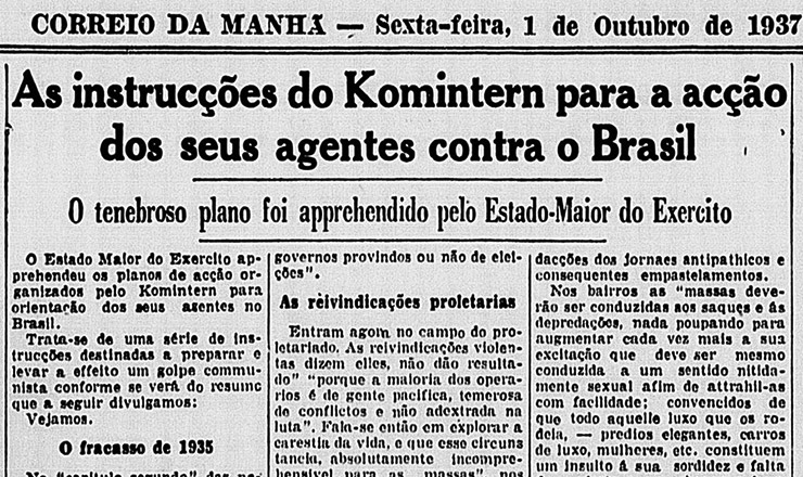 para implantar o comunismo no Brasil, o Plano Cohen. Entre outras ações, o